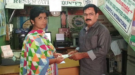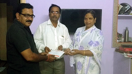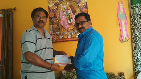 Shri Rama Mohan Rao Hebbare, BKET Founder and Managing Trustee, Bengaluru continued his support to BKET with a donation of Rs.2,000/- to Ms.Sasikala Bai Tandule on 4 May 2018 towards her examination fee for Nursing Diploma Course. Shri Nagoji Rao Mahendrakar gave the cheque to Ms.Sasikala Bai Tandule in Kurnool.