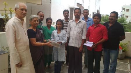 Smt.Uma Bai & Shri Samba Rao Khamithkar, Kurnool continued their support to BKET with a donation of Rs.10,000/- on 8 January 2018. They had supported the BKET efforts earlier with a donation of Rs.5000/- during 2013.