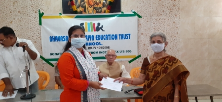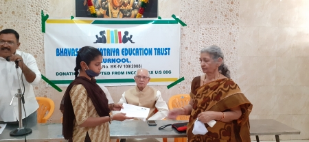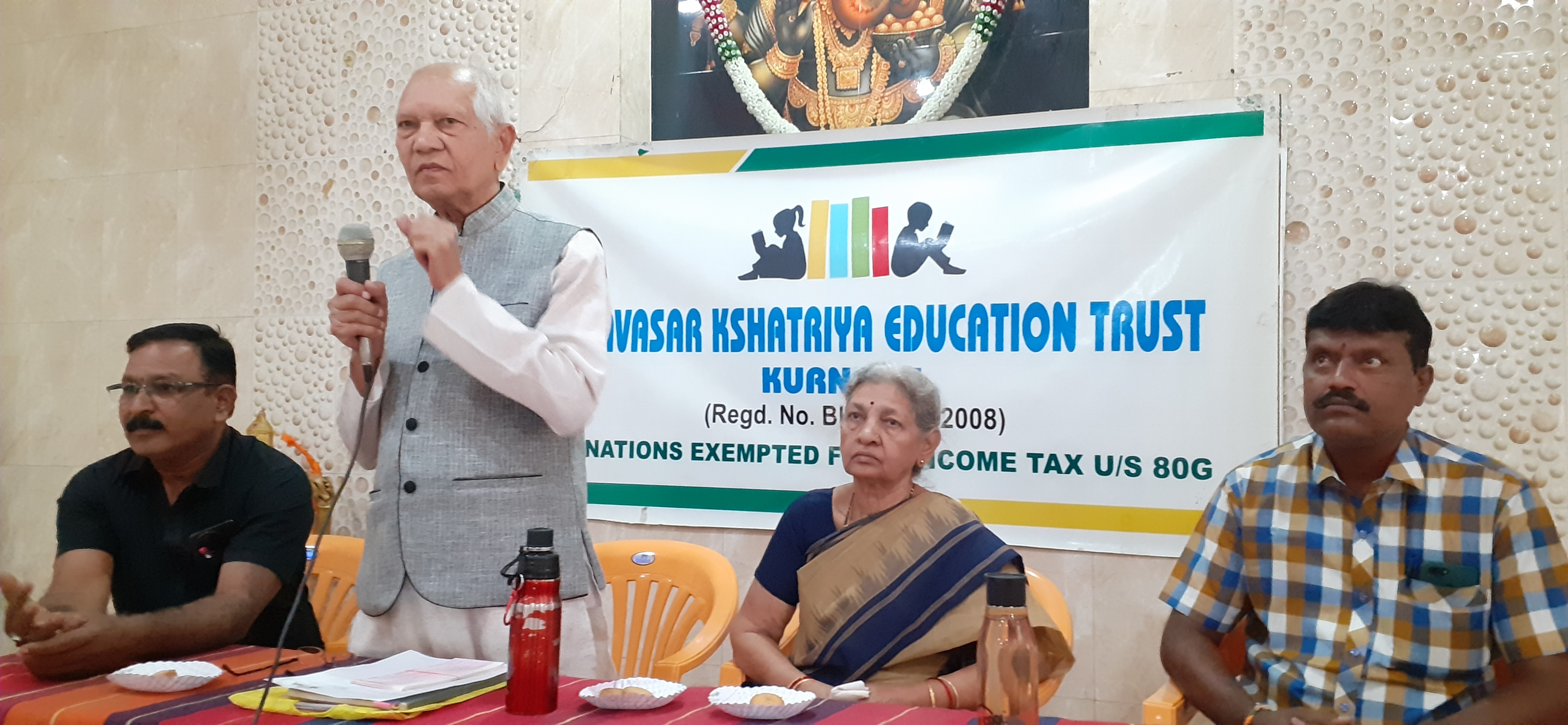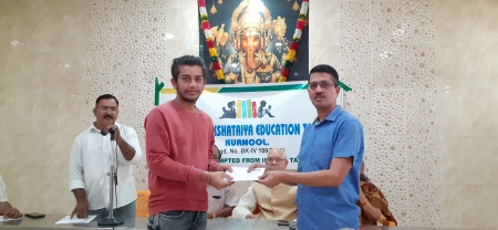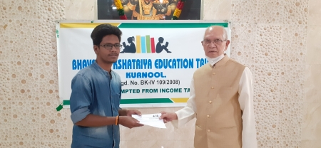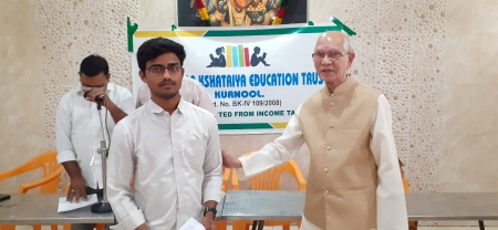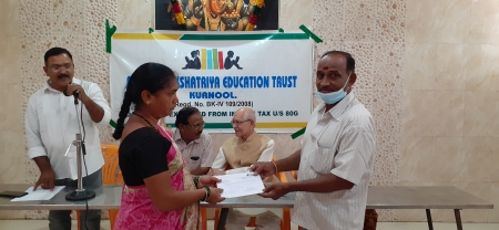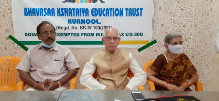 Bhavasar Kshatriya Education Trust organises Scholarship Distribution Ceremony 2022 to honor 50 meritorious students from Kurnool, Anantapur, Kadapa Districts with scholarships on 13 March 2022, Sunday, Andhra Pradesh. Chief Guest Sri Sandadi Maheswar, AP State Vishwa Hindu Parishad and President of Bharatha Matha Temple, Kurnool presided over the function alongwith BKET Legal Trustees Samaj Bhushan Sri Rama Mohan Rao Hebbare, Smt. Rukmini Hebbare and Sri Nagoji Rao Mahendrakar. Students and parents attended the function, collected the scholarships and shared their experiences.