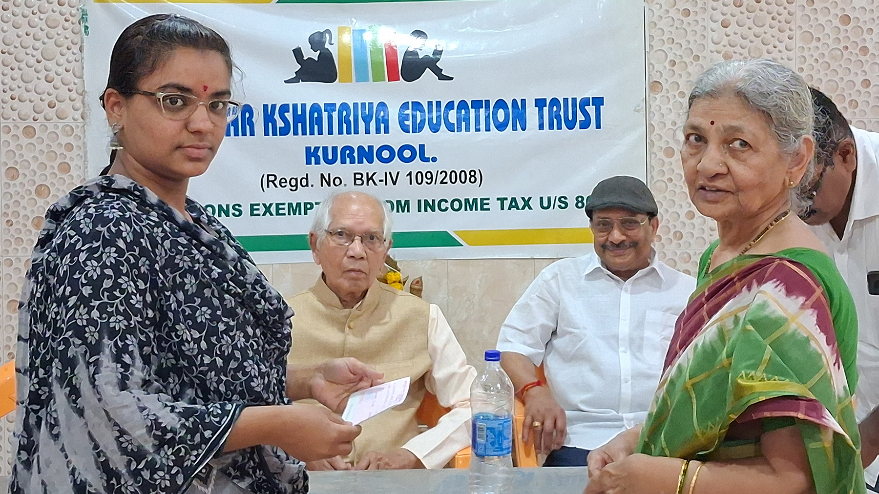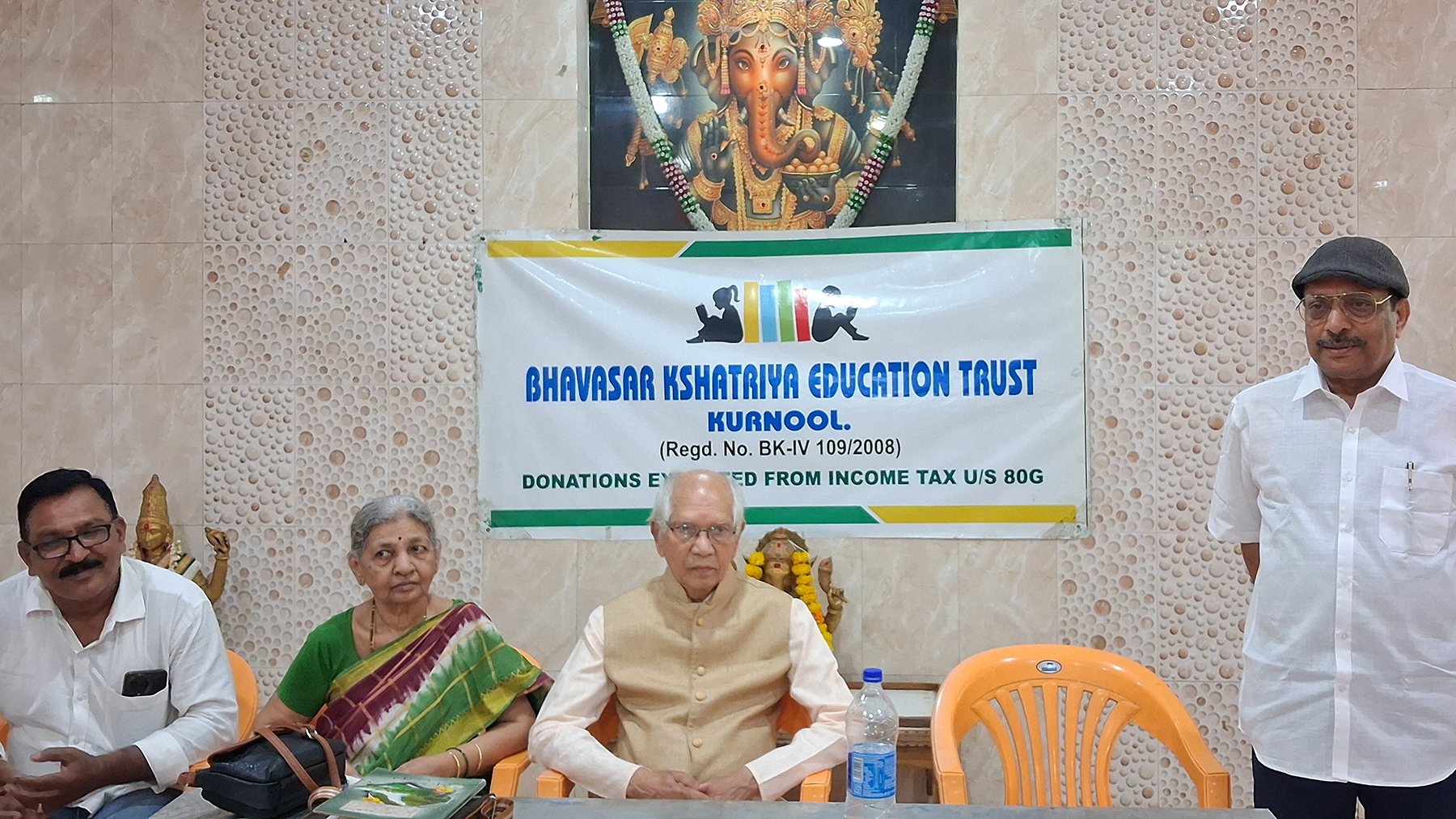 The Bhavasar Kshatriya Education Trust held its Scholarship Distribution Ceremony in Kurnool, Andhra Pradesh on February 18, 2024. The event was graced by the founder Shri Rama Mohan Rao Hebbare, legal trustees Smt. Rukmani Hebbare, Shri Nagoji Rao Mahendrakar and member trustee Shri PraveenKumar Hebbare. Shri Ramesh Rao Mahendrakar, Smt. Vijaya Mahendrakar and Smt. Vathsalya Lakshmi Hebbare actively participated in distributing the scholarships, enhancing the event's significance and impact.